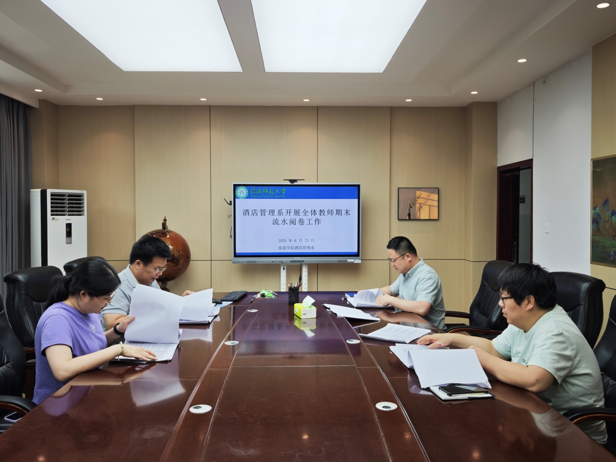 6月23日下午,酒店管理系全体教师期末总结工作会议在经管楼404会议室顺利召开,系主任李明伟主持会议。全体教师齐聚一堂,围绕酒店管理系期末流水阅卷、期末教学工作总结与下学期工作部署、教师组织深入贯彻中央八项规定精神学习教育共研共学活动三项议题展开深入交流与探讨,为学期工作画上圆满句号,也为新学期发展锚定方向。