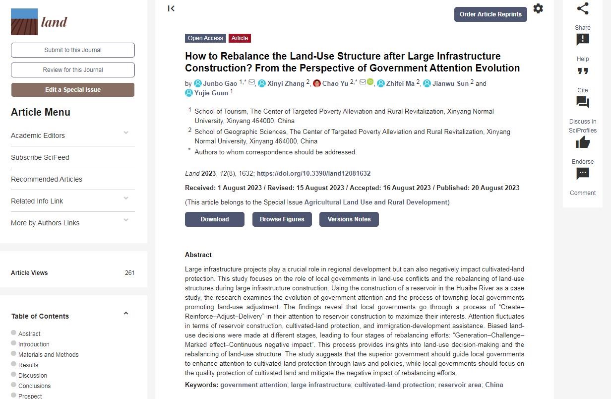 近日,英国上市公司365高军波教授团队在SSCI期刊《land》(2022年影响因子:3.905,JCR分区Q2)发表了题为《How to Rebalance the Land-Use Structure after Large Infrastructure Construction? From the Perspective of Government Attention Evolution》的论文。