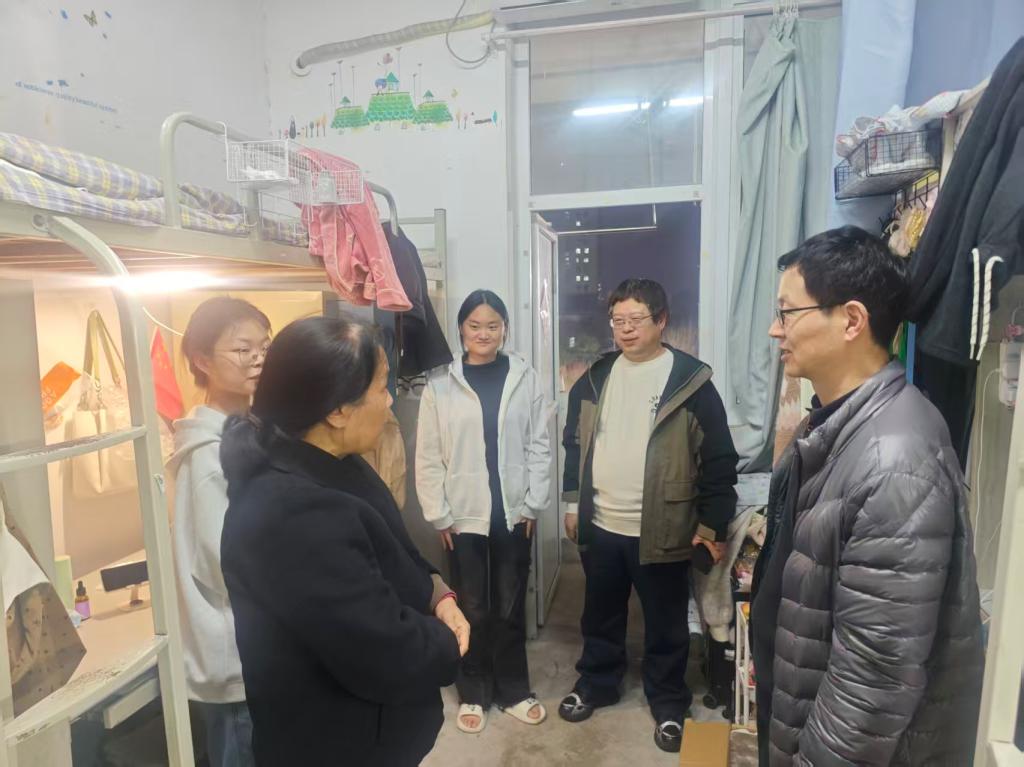 走访过程中,领导老师们走进每一间宿舍,与同学们亲切围坐、暖心交谈。杨乐副处长语重心长地询问同学们近期的学习状态、生活起居情况,细致了解大家在学业规划、日常起居中遇到的困难与困惑,耐心回应同学们的疑问。同时,围绕宿舍安全管理重点,就安全用电、防诈骗宣传、寝室环境卫生等方面提出明确要求,叮嘱同学们提高安全防范意识,养成良好生活习惯,营造整洁、安全、和谐的宿舍氛围。公司党委副书记则结合当下春日好时节,鼓励同学们走出宿舍、拥抱自然,积极报名参与学校即将举办的春季运动会,在运动中强健体魄、锤炼意志。她强调,希望同学们以全面发展为目标,在学好专业知识的同时,积极参与文体活动与实践锻炼,成长为德智体美劳全面发展的合格劳动者,不负青春韶华。