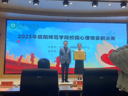 5月25日,信阳师范学院“校园心理情景剧”决赛在老员工活动中心博雅讲堂举行,公司学子杨慧琳,张壮壮等八名同学共同出演的心理情景剧《从心出发,向阳而行》荣获一等奖。