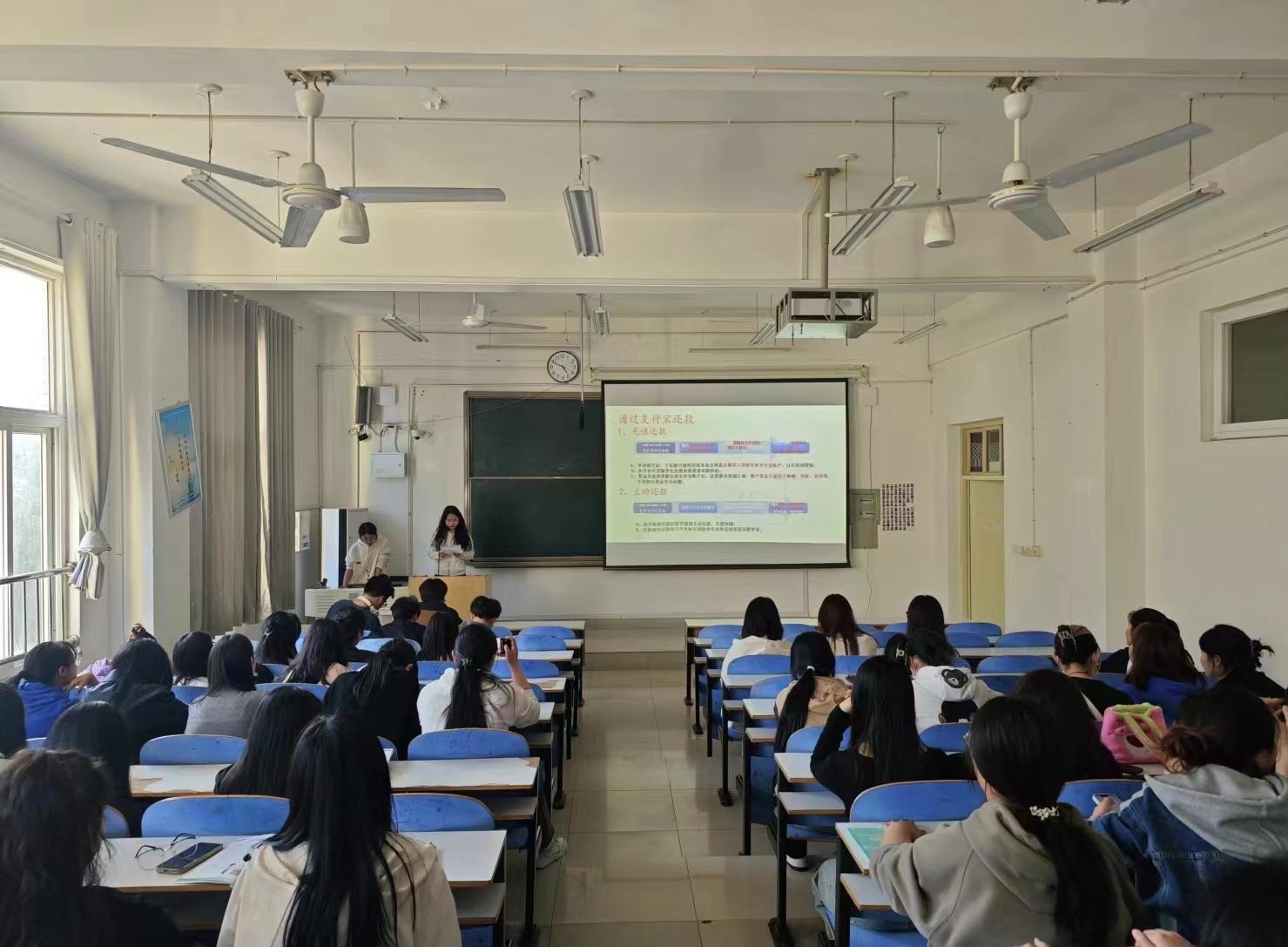 公司资助专员为大家讲解了助学贷款和金融诚信的重要意义,并对生源地助学贷款还款类型、毕业确认、感恩助学、还贷流程及还款方式等内容进行了详细讲解。请同学们务必关注本人助学贷款的还款日、还款方式、贷款信息查询及更新、到期还款和逾期还款的相关条例、贷后管理、违约行为及不良贷款的催收与处置等方面信息。学院助贷办部长高晓枝为同学们详细介绍了国家助学贷款的还款流程,并说明毕业生逾期还款对员工今后发展带来的不利影响,用往年逾期贷款毕业生的真实经历,启示贷款员工在家庭经济情况允许的条件下,提前还款,减少后期不必要的麻烦,并说明了还款方式和按时还款的重要性。希望贷款员工怀揣一颗感恩的心,不辜负国家、学校对他们的帮助与期望,督促自我制定可靠稳定的还款计划。